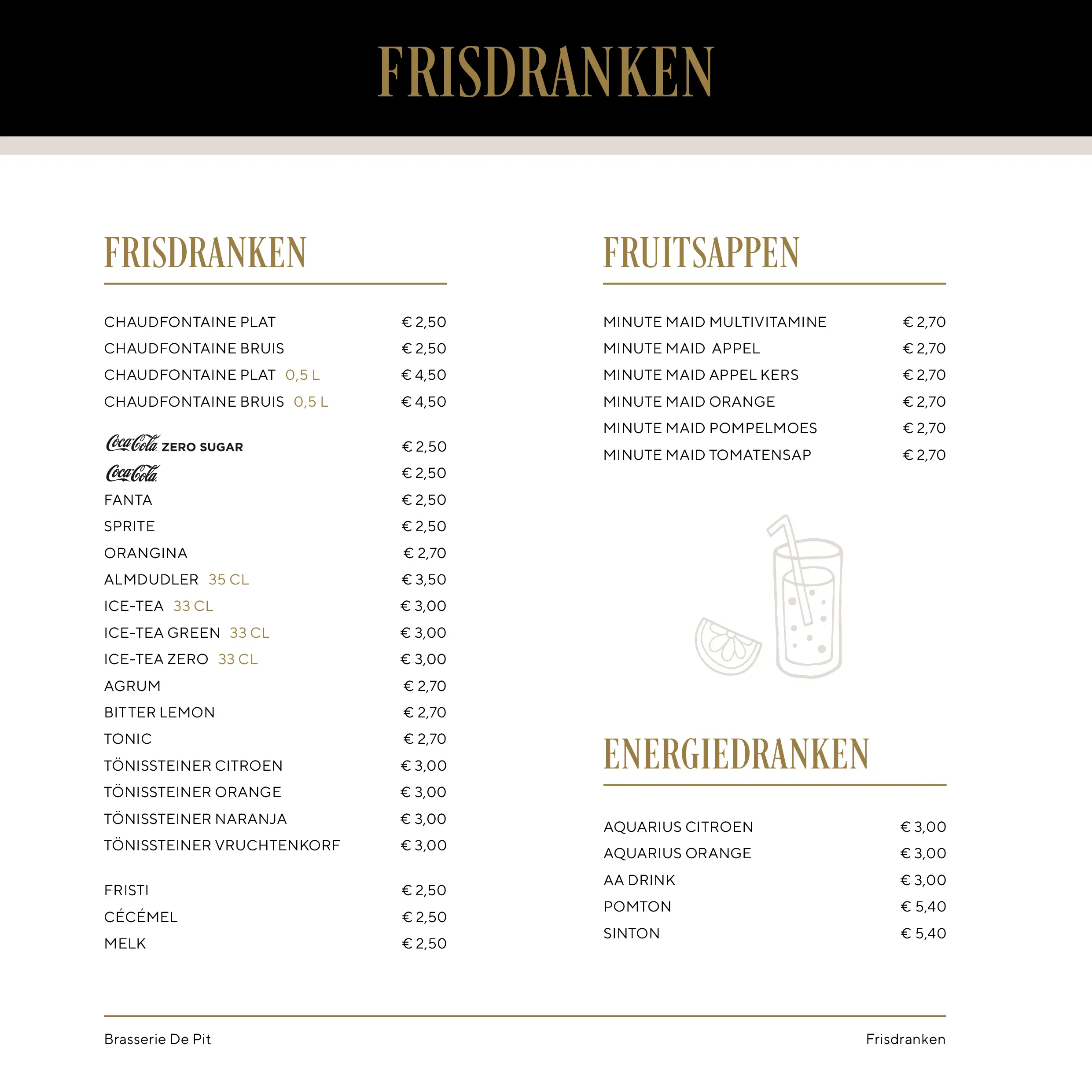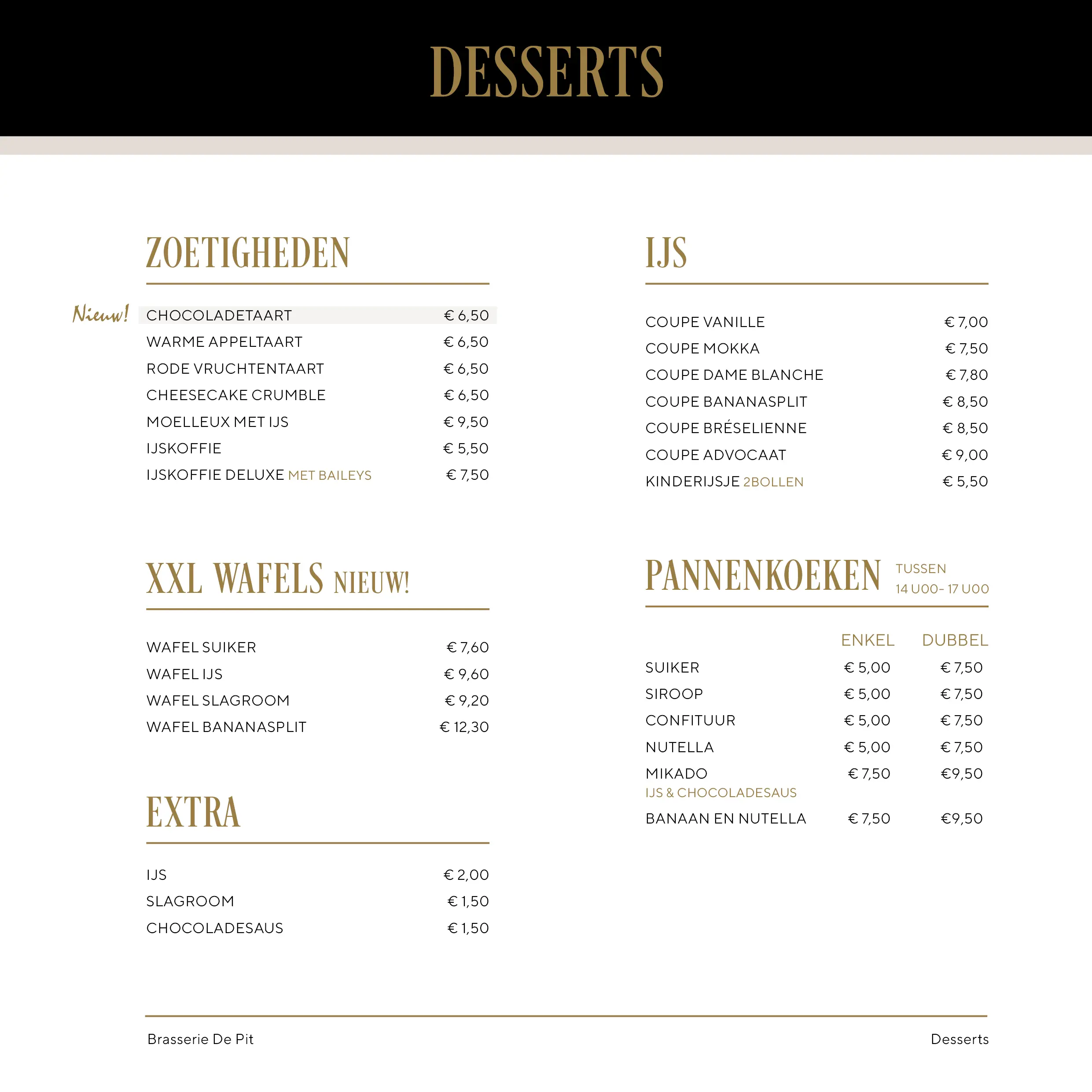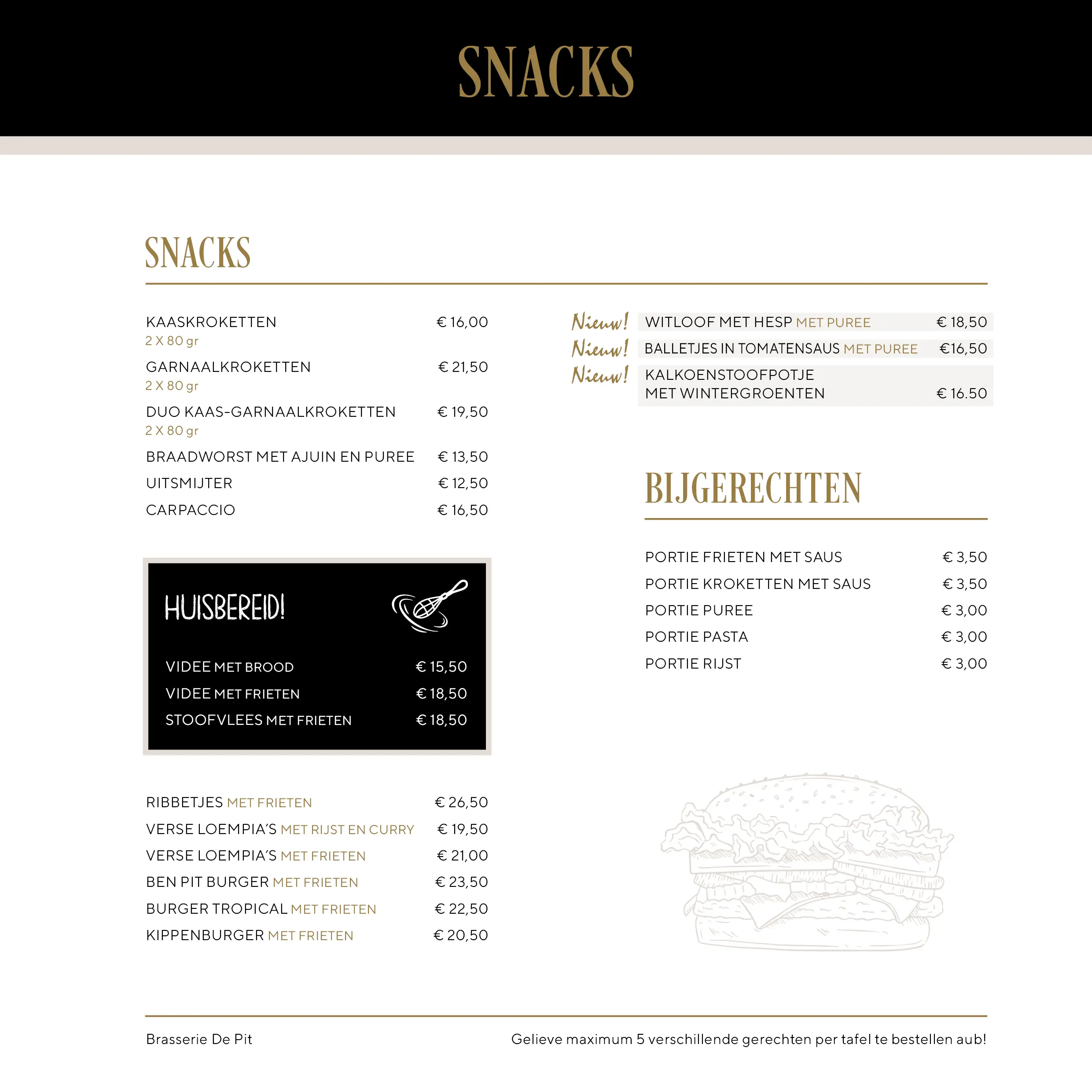 Van een snelle hap tot een uitgebreid diner – bij Brasserie De Pit vind je voor elk moment iets lekkers. Laat je verrassen door onze klassiekers, huisbereide gerechten en seizoensspecialiteiten. Kies, proef en geniet!
